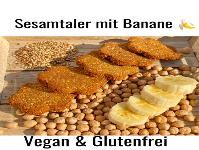 Kirchererbsenmehl mit Banane, Sesamöl, Natron und den Sesamsamen vermengen.